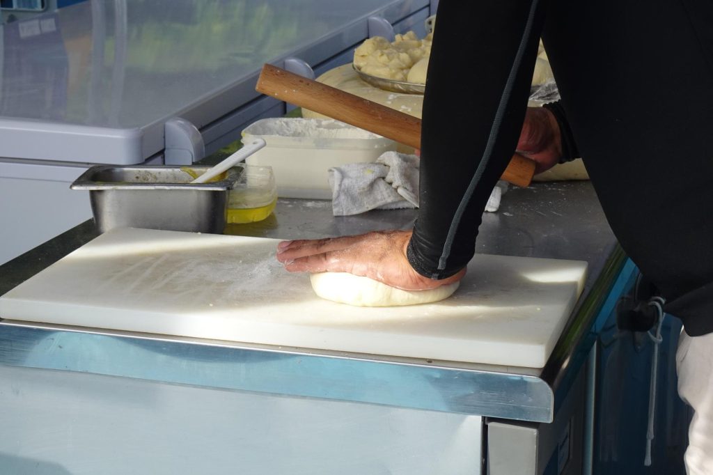 目の前でこねるところ、チーズを入れるところも見られます。これも宿題にできそうです!