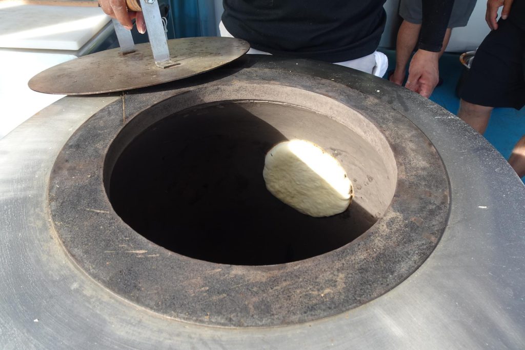 たっぷりのチーズを入れた生地を窯の壁にはりつけて焼くところも目の前で見られます。お子さまもきっと興味津々で大喜びですね。炭火の窯で焼かれた本格的なチーズナンは香ばしくておいしいですよ。