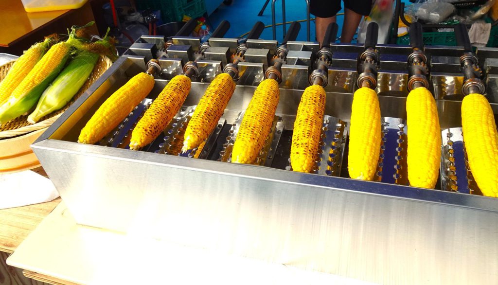 目の前で焼かれる大きなとうもろこしの香りは、大人だけでなく子どもたちの食欲をそそります。焼くことで甘みも増して、とてもおいしいです!